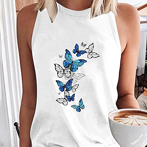 Canotta estiva da donna, con stampa a farfalla, senza maniche, con scollo a O, colore bianco, grigio, nero bianco XL