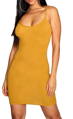 Canotta Lunga con Spalline - Ideale Anche Come Mini Abito - Tessuto Liscio - Donna - UK 16-18 / EU 44-46 XL (Taglie Plus) - Senape