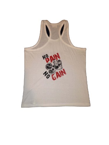 Esg - Canottiera da Body building - No Pain No Gain - Retro Sottile Bianco