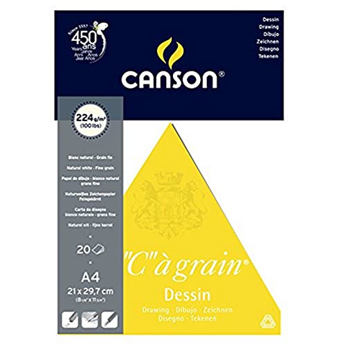 CANSON"C" à Grain blocco collato lato corto per grafica e illustrazione,A3,2 fogli,224g/m,grana fine