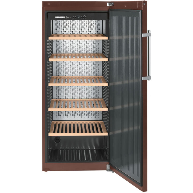 Liebherr WKt 4551 GrandCru. Posizionamento dell'apparecchio: Libera installazione, Colore struttura: Marrone, Colore interno: Acciaio inossidabile. Capacità bottiglie: 201 bottiglia/bottiglie, Intervallo temperatura (zona 1): 5 - 20 °C, Classe climatica: SN-T. Classe efficienza energetica: E, Consumo energetico annuo: 94 kWh, Scala di efficienza energetica: Da A a G. Controllo della luce: Interruttore interno, Tipo di controllo: Pulsanti, Tipo di blocco: Chiave. Larghezza: 700 mm, Profondità: 742 mm, Altezza: 1650 mm