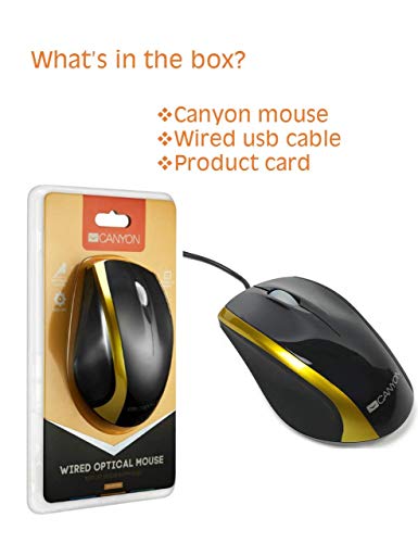 CANYON Mouse USB con Cavo per Laptop, PC, MacBook, iMac, Copertura Soft-Touch - Compatibile con Windows e Mac OS