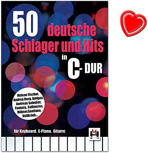 50 canzoni di successo tedesche in Do Maggiore con accompagnamento di basso con Helene Fischer Andrea Berg Olaf Henning Amigos Andreas Gabalier (Spartiti con graffetta colorata a forma di cuore)