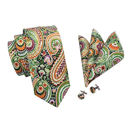 Caofenvoo - Cravatta, gemelli e pochette con stampa floreale
