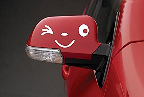 2 pcs x caolator etichetta engomada Linda de la cara de la sonrisa per los lati specchio retrovisore del coche- bianco