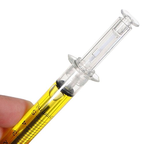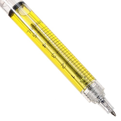 Non si tratta solo di una penna a sfera, a forma di siringa, molto realistica, ma anche di un liquido mobile, atossica e innocua.