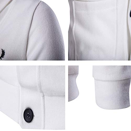 Capabes Maglione Cardigan Casual da Uomo Autunno e Inverno Ricamato Slim a Maniche Lunghe Tinta Unita Monopetto Taglie Forti Doppia Tasca X-Large