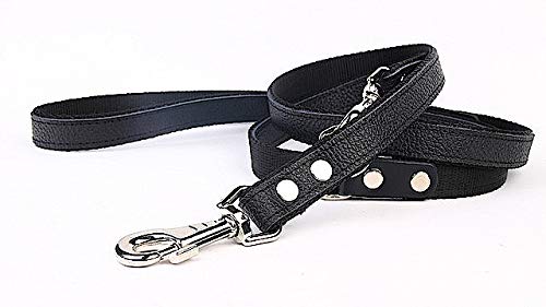 Capadi K0191 Guinzaglio Regolabile in Vera Pelle Foderata con Nylon Resistente, Nero, Larghezza 16 mm, Lunghezza 220 cm