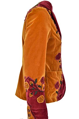 Capalbio Giacca Donna Blazer con Fiori Arancio e Bordeaux Velluto Cotone - Casual Country Chic - Arancio, 42