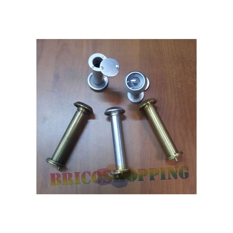 SPIONCINI mm. 14 in ottone, completi di rondella posteriore. Per porte corazzate. Visibilità 180°. Lenti sintetiche di qualità. Finiture: oro lucido - bronzo - cromo satinato Lunghezza mm. 50÷82 - 70÷120