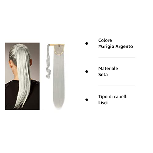 SEGO 65cm Coda Capelli Extension Cavallo Clip in Hair Ponytail Extensions Finti Sintetici Lisci - Grigio Argento