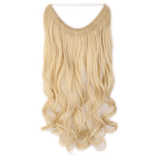 60cm 24" Capelli Extension con Filo Invisibile Extension Wire Linea Fascia Unica Capelli Sintetici Mossi 120g Biondo Decolorante