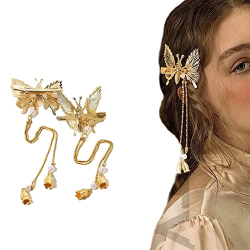 Clip per capelli farfalla, 2 pezzi Elegante Nappina farfalla a farfalla che muove farfalla volante clip antichi clip metallo clip per capelli lunghi per donne capelli fitti sottili
