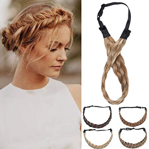 Capelli con Fascia Intrecciata 3 Fili Parrucchino Sintetico Trecce Fascia Elastica per Capelli Estensione Braiding Braids Hair Extensions Grande Larghezza 3.8cm Light Ash Brown mix Bleach Blonde