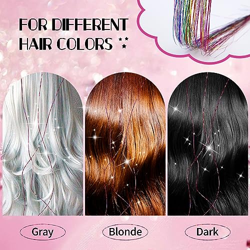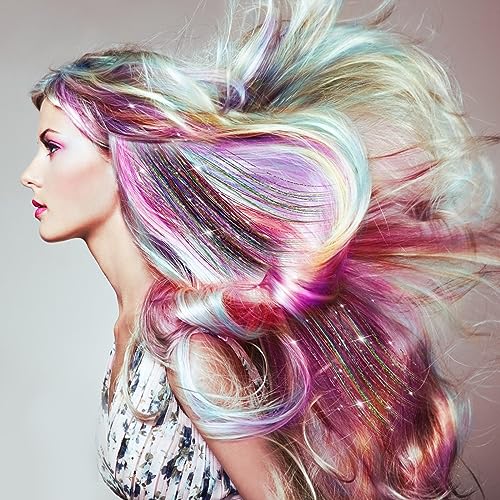 6 PCS Kit per capelli,capelli lucidi per donne,Extensions per capelli lucide Tinsel con clip,Extension Capelli Colorati Clip,accessori per capelli alla moda,glitter,decorazione (Sette colori)