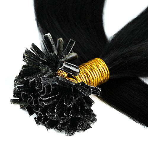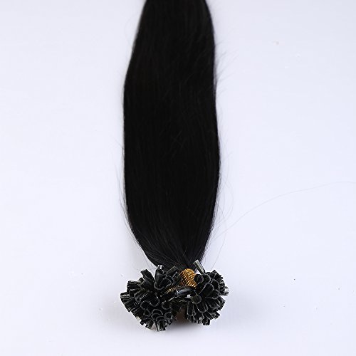 Remy Capelli Naturali Indiani Extension Capelli Veri Cheratina 1g/Ciocca U Tip Allungamento 50 Ciocche (50cm #1 Jet Nero)