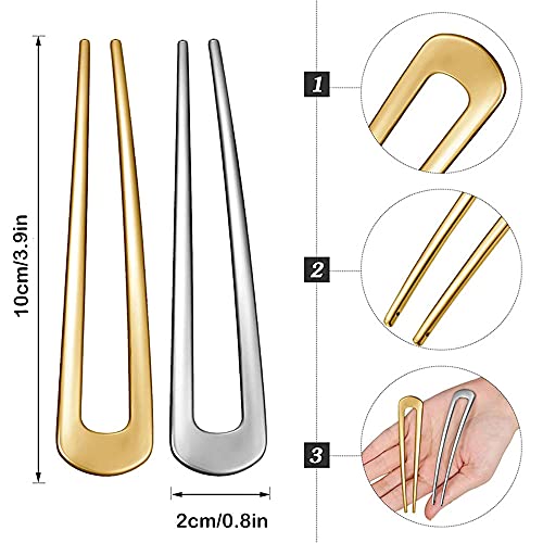 [Il Pacchetto Include] Avrai 3 pezzi di argento e 3 pezzi di forchette per capelli a forma di U d'oro, la quantità è sufficiente per soddisfare le tue esigenze quotidiane, può aiutare le ragazze e le donne a progettare acconciature diverse.