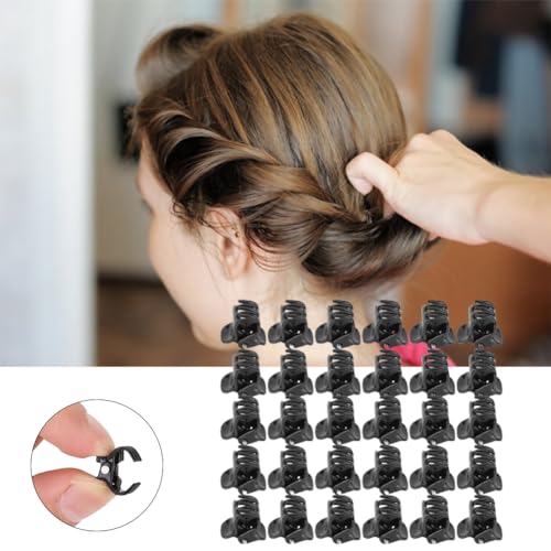 Mini Clip per Capelli Plastica, Nero Pinze Artigli Morsetti Piccole Stelo Grip Hairpin Perni Staminali Supporto Fermagli Regalo Ragazze Donna Adatto Acconciature e Coda di Cavallo 100 Pezzi