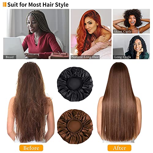 【Materiale morbido】 Riceverete 2 berretti per capelli in raso notturno di colore nero, caffè, Il materiale del cappello da notte è costituito da tessuto di raso e tessuto elastico, liscio, morbido e traspirante, piacevole al tatto, anti-pilling, antistatico e comodo da indossare.