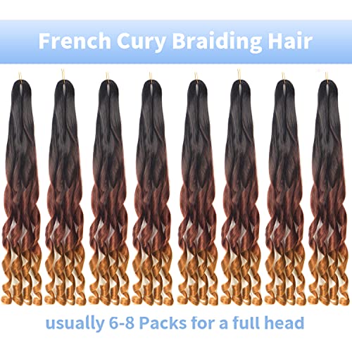 Capelli ricci francesi da 56 cm, confezione da 8 trecce a spirale ondulate sciolte per capelli all'uncinetto, estensioni sintetiche pre-allungate (22 pollici, 1B/30/27)..