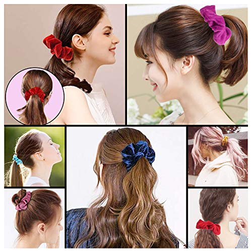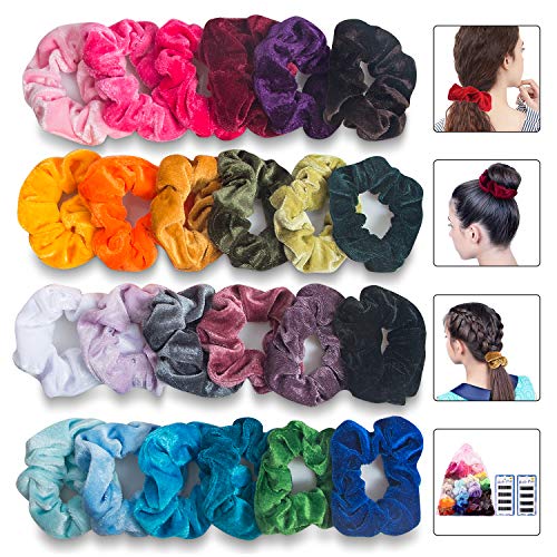 Capelli Scrunchies Velluto Elastico, Habett 24 Pezzi Elastici per Capelli Fasce per Capelli, Scrunchy Cravatte Velluto accessori per capelli per Donne Con Borsa + 72pz Mollette Neri (24 colori)