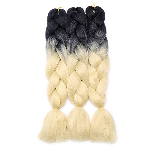 SEGO Capelli per Treccine Africane Afro Extension Sintetiche 3 Ciocche Trecce Lunghe 60cm Braids Braiding Hair Intrecciati Corchet 300g/pack - Nero mix Beige