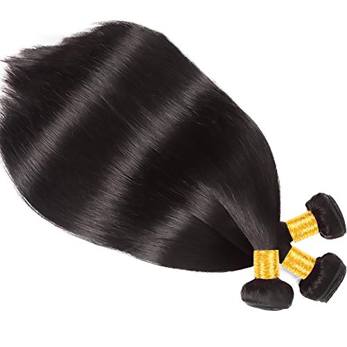 Peso e lunghezza: 3 ciocche di capelli umani brasiliani, 95-100 g/fascio, morbidi e spessi. Si prega di allungare i capelli vergini per essere lisci e misurare la lunghezza.