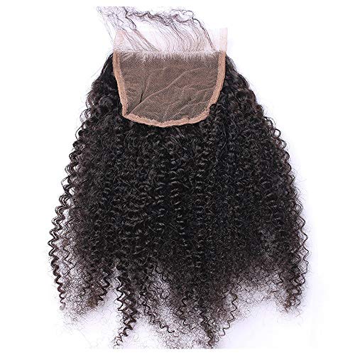 Afro Capelli Umani Closure 4x4 Size Afro Ricci Human Hair Afro Donna 8A Grade T1b Colore Remy Capelli Vergini Brasiliani