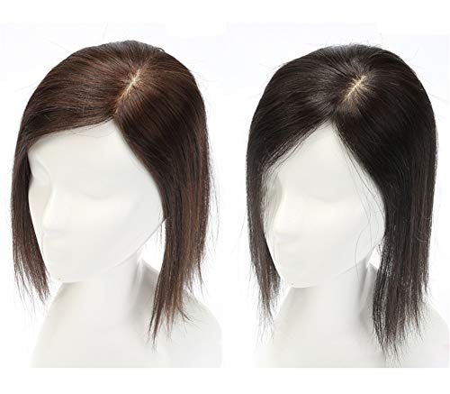 100% veri capelli umani corona topper parrucchino per donne - parte sinistra clip in Toupee morbido per capelli grigi o sottili (30,5 cm di colore nero)