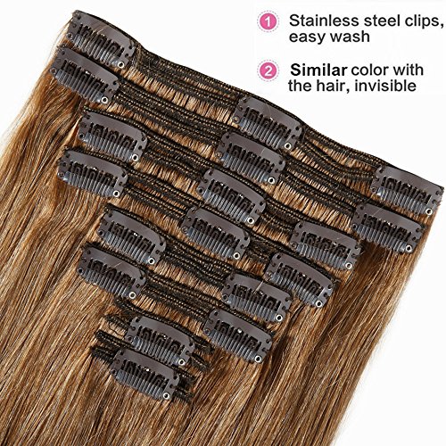 16"-22" Capelli Umani Extension Clip In 8 Pezzi Full Head Doppia Trama Parrucca Resistente al Calore
