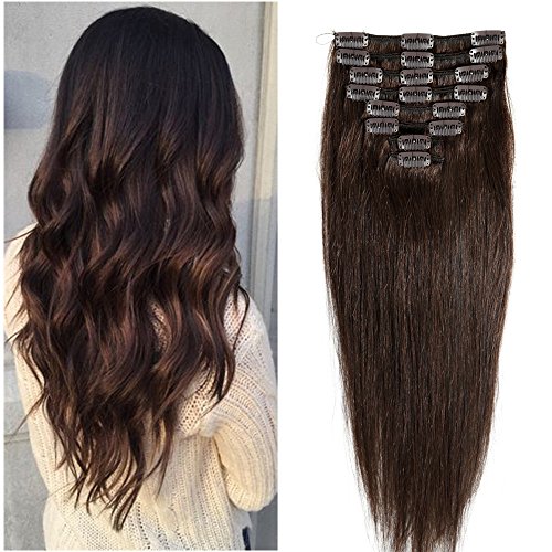 16" 8pz Capelli Umani Naturali Veri Remy Human Hair Extension con Clips Testa Intera Capelli Lisci