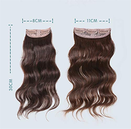 100% veri capelli umani 2 clip su un pezzo di capelli corona volume estensioni parrucche ondulate per donne, 30,5 cm, marrone scuro