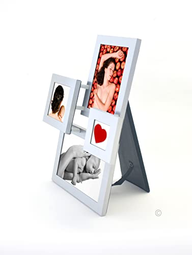 CAPESTORE Cornice Multipla in Alluminio Moderna ed Elegante, Collage 4 Fotografie, da Tavolo e da Parete, Amore, Natale