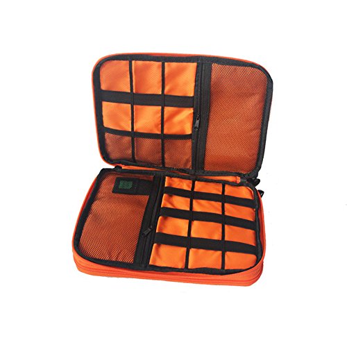 Dimensioni: 28x20x3,5cm, può adattarsi borsa e zaino. questo organizzatore è una versione aggiornata. Dotato di 2 scomparti separati, può organizzare più accessori elettronici di diverse dimensioni.