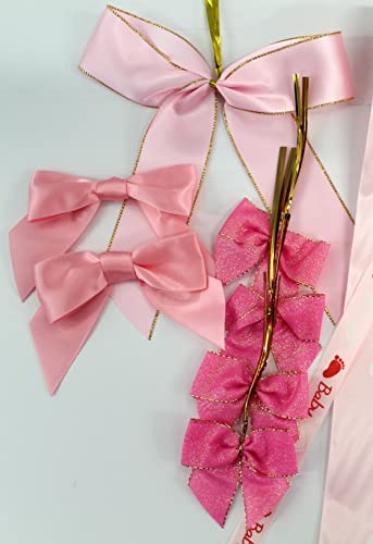 CaPiSo 16 pezzi decorazione torta di pannolini baby shower baby shower nastro fiocco + adesivo (Girl 01)