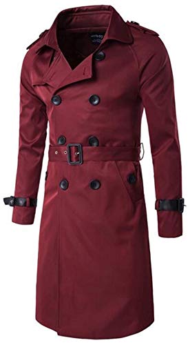 Capispalla da Uomo Slim Doppio Fit A Petto Stile Semplice Lungo Cappotto Giacca A Vento Trench Coat con Mens Giacca A Vento Lungo Capispalla (Color: Rot, Size: M)