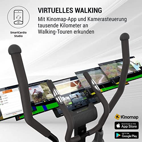 CAPITAL SPORTS Helix Air - Crosstrainer, Volano 12 kg, 24 Livelli, Cardiofrequenzimetro, Supporto per Tablet, App Kinomap, Max. 120 kg, Nero
