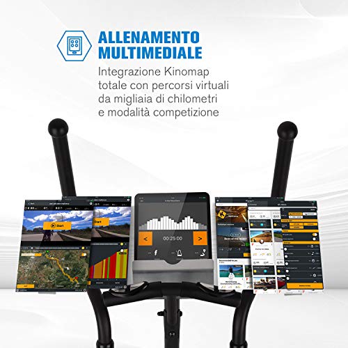 BENVENUTI NEL XXI SECOLO: Oggi, l'allenamento fitness deve essere multimediale e connettivo. Per raggiungere questo obiettivo, CAPITAL SPORTS Helix Pro Cross Trainer si affida alla piena integrazione dell'applicazione Kinomap. Essa offre l'accesso a più di 100.000 km di sentieri escursionistici ed è collegato direttamente al trainer ellittico tramite Bluetooth come sistema di feedback.