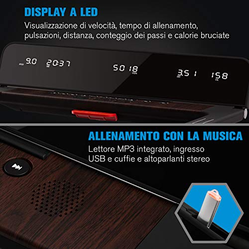 Capital Sports Outrun 2XC - Tapis Roulant Elettrico, Tapis-Roulant, Sospensione 4P-AntiShock, Superficie 48x125 cm, 1-12 km/h, Sensori a Impulsi, Lettore MP3, Altoparlanti Stereo, Max 120 kg