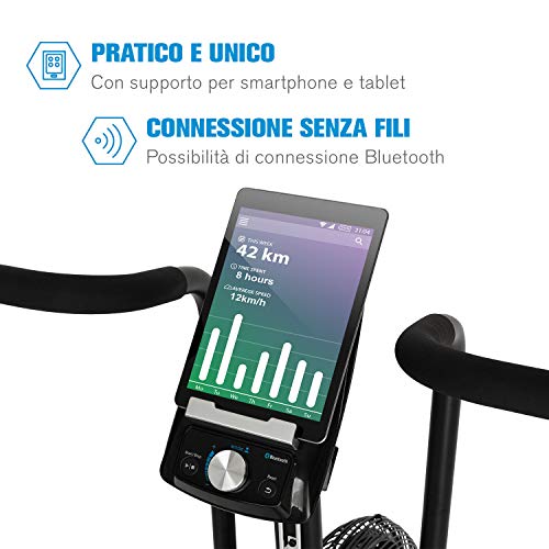 Capital Sports Strike Bike - Cyclette, Cardio Trainer, Resistenza alla Ventilazione, Computer Allenamento Integrato, Bluetooth, Altezza e profondità Regolabili, Porta Tablet, Max.150 kg, Nero