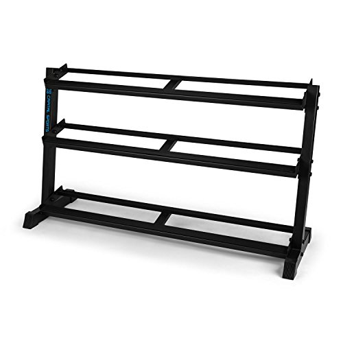 Capital Sports Traytor H - Rastrelliera per manubri, Storage Rack, Dumbbell Rack, Ripiani gommati, 3 Ripiani con Dimensioni 148 x 26 cm, Stabile Acciaio 5mm, Acciaio Rivestito a polveri, Nero