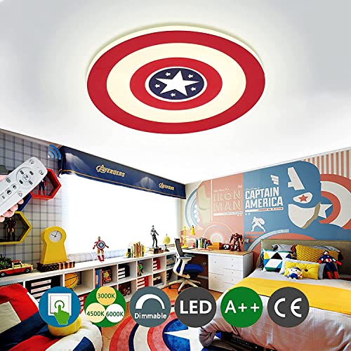 Capitano America Plafoniera LED Luci della camera da letto per bambini Dimmerabile con telecomando Luci decorative per asilo Luci della stanza delle ragazze dei ragazzi,62wø56cm