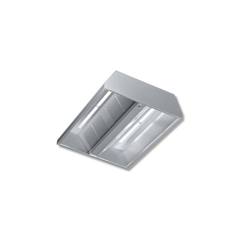 Codice RS7553 - Cappa di aspirazione serie Centrale modello RP-DSCMPNE 15/26, dimensioni cm. 260x150x45 (lxpxh), foro di uscita superiore dim. cm. 26x30, n.10 filtri a labirinto, portata 3000 mc/h, peso kg. 139, illuminazione a neon. Completa di ventilatore a doppia aspirazione IP 55 mod. SDR 9/9 Tight, 230 volt. Le cappe centrali sono caratterizzate da una struttura elettrosaldata in acciaio inox satinata. Canale perimetrale per la raccolta della condensa e dei grassi connesso alla vasca di contenimento, provvista di rubinetto di scarico che garantisce il massimo livello igienico e sicurezza nelle operazioni di pulizia. Filtri antigrasso in acciaio inox a labirinto. Se necessario valuta anche l'acquisto della piastra per il collegamento della tubazione sopra alla cappa, le trovi nella sezione Aspirazione > Piastre con collarino. Scegli il modello in base alla misura del foro superiore di uscita (quote A e B) e specifica il diametro del collarino.