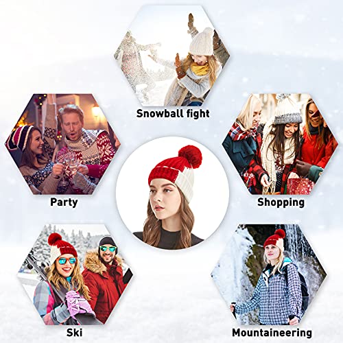 Cappelli Donna Berretto Invernali Cappello da Donna Cappelli Moda Winter Beanie Cappello Invernale Maglia da Donne con Rimovibile Pompon (Rosso+Bianco)