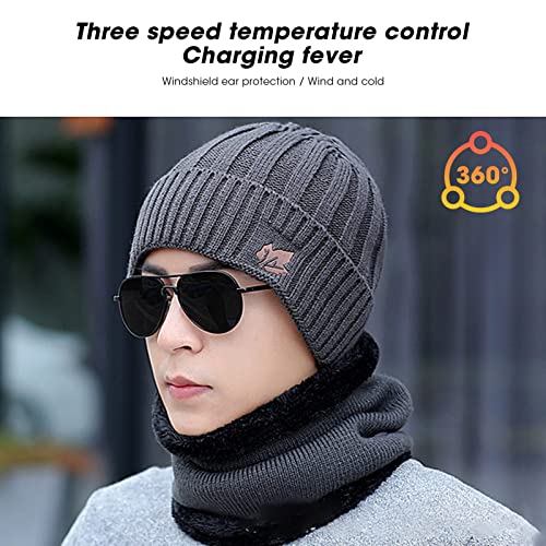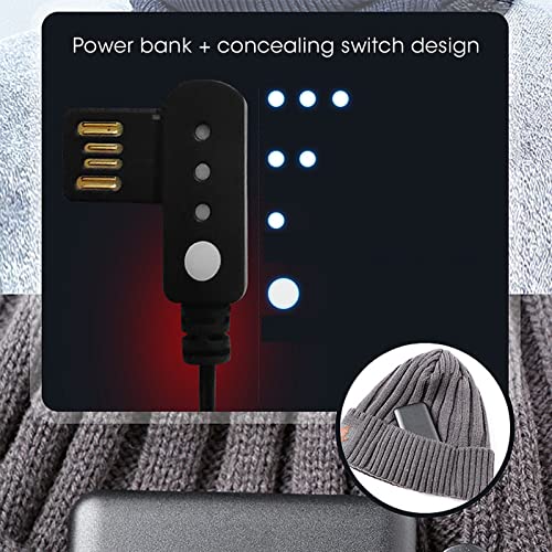 Cappelli Lavorati a Maglia Riscaldati Elettricamente, Cappelli Lavorati a Maglia Ricaricabili, Cappello Riscaldato Elettrico Calore Caldo Delicato Sulla Pelle per lo Sci Invernale Cappello(Grigio)