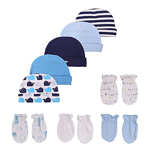 Set di cappelli e muffole per neonati - 5 cappellini e 5 paia di guanti per bambini da 0 a 6 mesi, 100% cotone Colore 4 Taglia unica