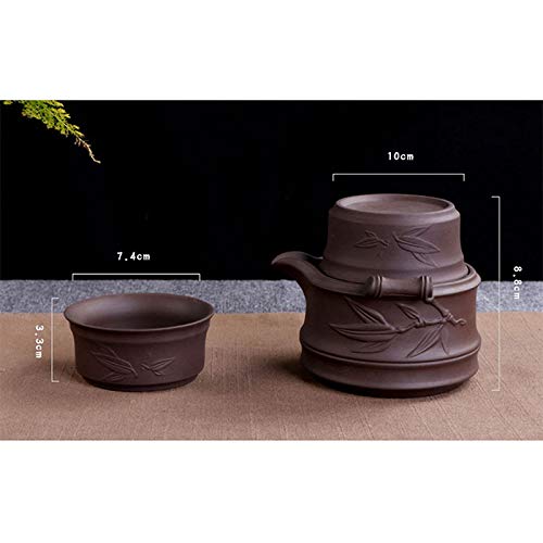 Dimensioni della teiera: 13 x 7 cm, capacità: 200 ml. Dimensioni delle tazze da tè: 7 x 3,5 cm, capacità: 70 ml. La teiera Zisha è un prodotto in ceramica non vetrificata. Si ritiene sia un'ottima teiera per preparare un tè dal sapore particolarmente piacevole, salutare e con effetti benefici a lungo termine.