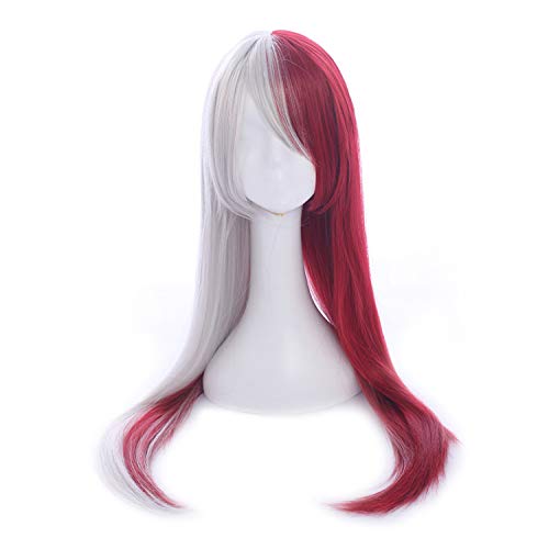 ❤ Confortevole e bella: il colore di questa parrucca è mezzo argento bianco mezzo rosso. Con una lunghezza complessiva di 27,9 cm e una fibbia regolabile, si può facilmente indossare una parrucca che si adatta a una circonferenza compresa tra 50,8 e 61 cm della testa. Una cuffia a rete rosa di alta qualità non danneggia i capelli e rende il cuoio capelluto confortevole.