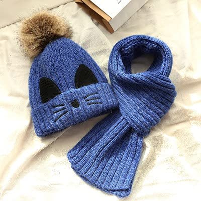 JFAN Cappelli per Bebè Ragazzi - Sciarpa Calda Invernale per Bambini Set Simpatico Berretto con Pon Pon Lavorato a Maglia Gatto per Bambino 2-8 anni (blu)