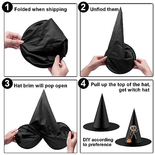 Confezione e dimensioni del cappello da strega: riceverete 12 cappelli da strega. Adatto per condividere con la famiglia e gli amici per vestirsi insieme. Ogni cappello da mago ha un diametro del cerchio di 38 cm, un diametro del cerchio di 19 cm e un'altezza del cappello di 36 cm. Adatto alla maggior parte delle persone.